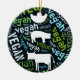 "Vegan" Word-Cloud Mosaic with a cow, pig, hen. Ceramic Ornament