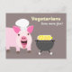 Cute pink pig is grilling up a corncob. Message says Vegetarians have more fun! but customize it to your message.