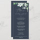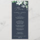 Cette carte de menu pour dîner mariage bleu marine et vert boisé est parfaite pour un été ou un mariage de automne. Le design boho moderne comprend des feuilles d'eau vert émeraude, sauge et olive luxuriants et des botaniques avec des sprigs de fleurs blanches élégantes. Ce menu peut être utilisé pour une réception de mariage, un dîner de répétition ou tout événement.