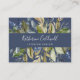 Ce carte de visite de marine de verdure d'automne est parfait pour un propriétaire de petite entreprise, consultant, styliste et plus encore! Le design rustique moderne présente des feuilles bleu marine, vert sauge et or avec des branches de fleurs bleu foncé.