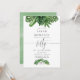 Feuilles tropicaux et magnolias blancs et sauge tendance invitation à la fête du 50e anniversaire avec typographie manuscrite conçue pour être rapidement et facilement customisée aux détails de votre événement.