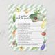"Locally grown baby is on the way". Celebrate with this watercolor vegetable themed baby shower party! Watercolor cucumber, onion, eggplant, zucchini, yellow and red tomatoes, radishes, carrots, hot pepper, sweet yellow pepper, peas and cabbage, broccoli and beetroot on a cutting board. Watercolor organic harvest.