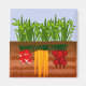 Digital illustration of a bunch of vegetables growing in the good garden soil. Carrots, beets and radishes.