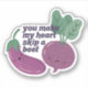 An eggplant confessing to a beetroot: You make my heart skip a beet, A punny Valentine's Day confession.