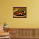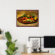 This poster features a delectable wooden platter of fresh raw vegetables including carrots, tomatoes, peppers, cucumbers and parsley. Lemons and cashews complete the selection. This still life is a beautiful and healthy gourmet meal as well as a colourful artistic composition of red, orange, yellow, green, tan and brown.