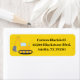 pelle de construction personnalisée cool fête d'anniversaire retour étiquettes d'adresse pour un enfant qui aime les véhicules de construction jaune en noir et jaune. Conception de véhicule amusant pour un petit garçon qui aime les voitures et les camions. Customisez avec votre adresse sous le ruban de prudence noir et jaune.