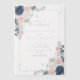 This romantic dusty blue and blush vellum wedding invitation embodies modern elegance with a painterly touch. Featuring a delicate blend of soft pink florals, deep navy roses, and ethereal greenery, all accented with gold splatter details, this design is perfect for refined celebrations with a hint of artistic charm.