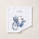 aquarelle peinture d'un vélo avec une corbeille de fleurs dans les couleurs Delft Blue