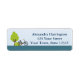 Une étiquette de adresse élégante avec vélo et arbres sur un arrière - plan bleu.