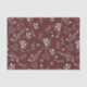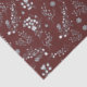 Tissue paper with a winter white and grey twigs and berries pattern on a velvet red maroon background.