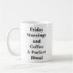 Commencez votre vendredi avec un sourire et une gorgée de cette tasse de café pleine d'esprit ! Parfait pour les amateurs de café et les guerriers de bureau qui connaissent la joie de l'approche du week-end. Propose la citation motivationnelle "Friday Mornings and Coffee : A Perfect Blend" en typographie noire sur un arrière - plan propre. Fabriqué avec de la céramique de haute qualité qui maintient votre café à la température parfaite. Disponible en 11oz et 15oz pour alimenter votre poussée journalière finale. Fait un cadeau parfait pour les collègues, les patrons, ou tout amateur de café qui apprécie l'humour au travail. Lave-vaisselle et micro-ondes.