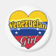 Leuke magneet met een hart afgebeeld met de Venezolaanse vlag erop. Op de tekst staat: Venezuelan girl De achtergrond is in de kleur wit. Leuk om te geven als cadeau of voor jezelf om te laten zien dat je trots bent om Venezolaans te zijn. kleuren: wit, blauw, geel en rood.