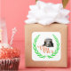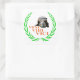 Ancient Roman military helmet made of copper metal. Text Veni, Vidi, Vici. Drawing of a green laurel wreath around. Square format products and gifts. Square Sticker