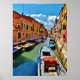 What is it like to travel down a canal in Venice? Shows the colourful boats and buildings of this lovely city.