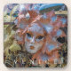 A close up photograph of a carnival mask on a market stall in Venice in Italy printed on a set of souvenir coasters.