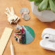 This customizable keychain features a picturesque black gondola with empty seats tied up to the dock, awaiting peacefully for tourists on the still water of a small canal during a sunny afternoon from Venice, Italy. If you wish to personalize this keychain as a present or souvenir, you can replace both texts with your own (the vertical text shown with "Venice" and the horizontal text shown with "Italy").