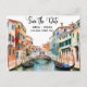 The "Save the Date" card presents a picturesque scene of Venice, Italy, beautifully rendered in watercolor on the front. Against a backdrop of serene canals and charming Venetian architecture, the essence of the city's romantic allure is captured in every brushstroke. Gondolas glide gracefully along the tranquil waters, while historic buildings with their ornate facades stand tall under the warm Mediterranean sun. In elegant script font, the words "Save the Date" adorn the top of the card, their graceful curves mirroring the flowing canals of Venice. Below, the names of the bride and groom are delicately intertwined, written with a sense of tenderness and love. Beneath their names, the wedding date is displayed with subtle sophistication, marking the momentous occasion that awaits.
