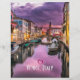 A flyer with a beautiful scenic landscape photo of a canal in Venice, Italy. With dark purple clouds, looks like a storm is coming. Great capture of the unique venetian architecture and watery reflections. Customizable text says: Venice, Italy with a little heart above the words.