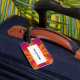 This awesome luggage tag features a fractal image that is reminiscent of a thunderstorm on Venus. It has a bright orange background with bright yellow lines coming out from the centre that look like burning bolts of lightning. In the centre of each lightning bolt there is a blue line that reminded me of a vein resulting in the title Venous Thunderstorm.There is customizable text on the back allowing you to personalize your tag with your name and any other information of your choice.