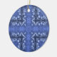 Un joli motif bleu à bougies et tourbillons ornent cet ornement de vacances en céramique.