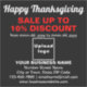 BON THANKSGIVING ! Fête pour célébrer ce novembre pour remercier pour les bénédictions que nous avons reçues. C'est aussi l'un des jours fériés pour annoncer votre entreprise. Autocollant vinyle carré personnalisable avec Thanksgiving Sale, votre nom d'entreprise et d'autres informations. Autocollant de vinyle que vous pouvez utiliser comme matériel de marketing pour attirer plus de clients. Customisez-le et affichez-le pour convaincre plus de clients d'acheter vos produits ou clients d'aimer vos services. Les couleurs design sont des textes rouges et blancs sur arrière - plan noir. Les contenus sont des salutations Bons thanksgivings, des textes de vente avec pourcentage de réduction que vous offrirez, des dates de vente, votre nom d'entreprise, logo, adresse, numéro de téléphone, e-mail et site Web ou votre page de médias sociaux d'affaires. Veuillez vérifier l'apparence après avoir téléchargé le logo et tapé des textes. Si l'apparence vous plaît, vous pouvez passer votre commande maintenant. Si vous avez besoin de redimensionner et déplacer le logo et les textes pour tenir sur cet autocollant ou sur la taille que vous choisirez, s'il vous plaît changer dans l'outil de conception. Vous pouvez également modifier la couleur arrière - plan, la couleur de police et le style de police dans l'outil de conception. BON THANKSGIVING ! Je vous souhaite plus de ventes ce jour férié.