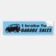 Attention! Je freine pour GARAGE VENTES! Juste une courtoisie de faire savoir à vos camarades que vous êtes sur le chemin de la cueillette Garage Sale. Espérons que nous aurons cette dernière pièce de collection que vous cherchez. Ou trouvez quelques livres pour la décoration, quelques ornements de Noël d'occasion mais toujours extraordinaires ou ces petits petits boules qui sont toujours si nombreux. Choisissez votre couleur préférée pour un arrière - plan pour remplacer notre autocollant bleu. Que diriez-vous d'une couleur qui corresponde à votre voiture ? Faites un cri de pare-chocs !