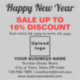 Bonne année ! Un nouveau départ. Un nouveau départ. Fêtes pour célébrer ce Janvier et pour annoncer aussi votre entreprise. Autocollant vinyle carré personnalisable avec Nouvel An Vente, votre nom d'entreprise et d'autres informations. Autocollant de vinyle que vous pouvez utiliser comme matériel de marketing pour attirer plus de clients. Customisez-le et affichez-le pour convaincre plus de clients d'acheter vos produits ou clients d'aimer vos services. Les couleurs design sont des textes noirs et rouges sur arrière - plan gris. Les contenus sont des voeux de bonne année, des textes de vente avec pourcentage de réduction que vous offrirez, des dates de vente, votre nom d'entreprise, logo, adresse, numéro de téléphone, e-mail et site Web ou votre page de médias sociaux d'affaires. Veuillez vérifier l'apparence après avoir téléchargé le logo et tapé des textes. Si l'apparence vous plaît, vous pouvez passer votre commande maintenant. Si vous avez besoin de redimensionner et déplacer le logo et les textes pour tenir sur cet autocollant ou sur la taille que vous choisirez, s'il vous plaît changer dans l'outil de conception. Vous pouvez également modifier la couleur arrière - plan, la couleur de police et le style de police dans l'outil de conception. Bonne année ! Je vous souhaite plus de ventes ce jour férié et les années à venir.