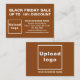 Attirer plus de clients en leur offrant la réduction ce Black Friday, l'une des stratégies de marketing pour avoir plus de clients. Carte de boîtier personnalisable que vous pouvez utiliser pour attirer plus de clients pour acheter vos produits ou clients à aimer vos services. Carte de boîtier avec votre marque d'entreprise comme matériel marketing que vous pouvez également utiliser pour sensibiliser la marque. Les couleurs design sont des textes brun clair et blanc sur arrière - plan marron. Pour customiser cette carte de boîtier, indiquez le pourcentage de réduction que vous offrirez, téléchargez votre logo d'entreprise, tapez votre nom d'entreprise, votre adresse, votre numéro de téléphone, votre adresse e-mail et votre site Web ou votre page de médias sociaux professionnels. Veuillez vérifier l'apparence sur les côtés avant et arrière après avoir téléchargé le logo et tapé des textes. Si l'apparence vous plaît, vous pouvez passer votre commande maintenant. Si vous avez besoin de redimensionner et déplacer le logo et les textes pour s'adapter à cette carte d'enceinte, veuillez modifier l'outil de conception. Vous pouvez également modifier la couleur arrière - plan, la couleur de police et le style de police dans l'outil de conception. Je vous souhaite plus de ventes ce Vendredi Noir.