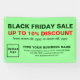 Bannière rectangle personnalisable avec Black Friday Sale, votre nom d'entreprise et d'autres informations. Customisez-le et affichez-le comme matériel marketing pour attirer plus de clients pour acheter vos produits. Les couleurs design sont vert foncé et les textes rouges sur arrière - plan vert clair. Le contenu est Black Friday Sale, pourcentage de réduction que vous offrirez, dates de vente, votre nom d'entreprise, logo, adresse, numéro de téléphone, e-mail et site Web ou votre page de médias sociaux d'affaires. Veuillez vérifier l'apparence après avoir téléchargé le logo et tapé des textes. Si l'apparence vous plaît, vous pouvez passer votre commande maintenant. Si vous avez besoin de redimensionner et déplacer le logo et les textes pour tenir sur cette bannière ou sur la taille que vous choisirez, s'il vous plaît changer dans l'outil de conception. Vous pouvez également modifier la couleur arrière - plan, la couleur de police et le style de police dans l'outil de conception. Je vous souhaite plus de ventes ce Vendredi Noir.