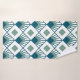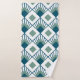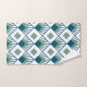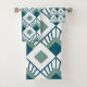 Ce kit de serviettes a un design art déco de diamants turquoises avec des lignes en diagonale et des diamants verts de mer sur un champ de blanc.