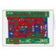 J'ai passé environ un an à travailler comme graphiste interne pour une société de fabrication à Torrance, en Californie, où ils ont produit des machines de lettrage et le ruban auto-adhésif utilisé dans les machines. L'accès à beaucoup de ruban et aux machines, et un peu de temps libre, conduit à cette série de pièces construites à partir de la bande. Pour l'impression, j'ai nettoyé l'image pour rendre les couleurs plus solides, claires et définies. Ruban auto-adhésif sur affiche, application originale. 12 po x 18 po; c. 1986.