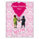 Personnalisez facilement ce mignon gosses tenant la main, et des ballons romantiques en forme de coeur rose et damas traditionnel avec votre nom texte pour faire une carte unique pour votre maman ce jour de Saint-Valentin.