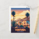 Display the palm trees, mountains and sunset in Ventura, on the coast of Southern California.