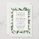 Green Watercolor Botanical Wedding Invitations - présente un arrière - plan imprimé blanc aquarelle texture papier avec aquarelle verte entourant une zone de texte dorée. Chaque feuille présente différentes nuances d'aquarelle verte pour un look unique.