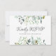 Carte de réponse RSVP double face avec choix de repas. Cette carte de réponse de mariage à la verdure est une partie obligatoire de l'ensemble de mariage pour votre jour spécial qui demande commodément aux invités quel repas ils aimeraient à votre réception et s'ils pourront assister à votre mariage. Cette carte présente de belles feuilles botaniques peintes à la main. Le fond peut être changé. Cette carte RSVP s'adaptera parfaitement à nos invitations à la verdure. Fait partie d'une collection.