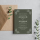 Cette magnifique invitation de mariage simple mais élégante présente un cadre de feuilles dessinés en bordure du texte de l'invitation. Veuillez me contacter si vous désirez de l'aide pour customiser la partie texte.