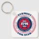The Vermont State Keychain has a circular typography design with red, white, and blue colours on a white background. The text includes the state's name, capital, state abbreviation, resident's name, region, time zone, geographic coordinates, the year of its statehood, and the country - The United States of America. Unique patriotic gift idea.