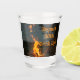 Birthday party shot glass with custom text and bonfire design. Celebrate getting older with an outdoor fire party. Customize shot glasses for party goers and give out as favors. Add the honoree's name, age, or other wording that will fit the space.