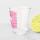 Fête de fiançailles de pickleball, fiançailles, enterrement de vie de jeune fille, ou activité de pickleball pendant le week-end nuances de verre à shot de pickleball rose personnalisable. Le fond est un mélange de balles de pickleball rose pâle, rose vif et rose cassé. Anneaux de fiançailles et alliance entrelacés avec les initiales au centre pour personnaliser avec la date du mariage en dessous et les mots - dernier swing avant l'anneau - au-dessus. Fournitures de fête personnalisées et personnalisables.