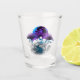Une belle lune bleue et violette s'élève derrière les montagnes et les nuages.