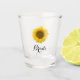 Verre à shot pour la mariée rustique, avec un design de tournesol jaune et lettrage noir personnalisable. Un cadeau formidable pour la mariée pour célébrer son enterrement de vie de jeune fille ou sa douche de mariée.