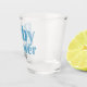 Cette vitre amusante, à base de silice, contient l'expression "Baby shower" imprimée dans un style rétro, fausse police de parties scintillant bleu bébé. Le mot "shots" est imprimé ci-dessous dans une police noire.