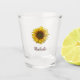 Boho cute girly Sunflower bloom shot glass, with customizable script typography. Enjoy this personalized accessory item for yourself or as a gift for someone special.