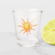 Un verre à liqueur avec une illustration du soleil là-dessus.