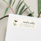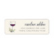 Les étiquettes d'adresse de retour crémeuses et blanc cassé indiquent votre nom et votre adresse de retour en lettres bleues fumées et grises, ainsi qu'une illustration en aquarelle d'un verre de vin rouge orné de branches d'olivier.