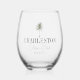 Impressionnez vos invités de mariage de destination avec ces faveurs de mariage chic et moderne en verre de vin personnalisé sans tige. Design présente une illustration de palmier aquarelle avec votre destination mariage sous (illustrée avec Charleston) en lettres serif classiques. Ajoutez vos noms en dessous en écriture cursive vert foncé, ainsi que l'année (en chiffres romains pour un look unique). Les couleurs peuvent être modifiées pour correspondre à vos couleurs mariages à l'aide de l'outil de design de Zazzle.