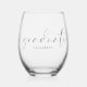 Élégant verre de vin sans tige pour griller le diplômé à sa fête de fin d'études mettant en vedette "diplômée" dans un script moderne chic et son nom dans la typographie simple.