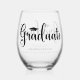 Élevez votre célébration avec notre Elégant Graduate Black Custom Name Stemless Wine Glass. Doté d'une élégante calligraphie dorée, ce verre est parfait pour déguster des toasts à des réalisations académiques ou à des projets futurs.