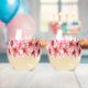 Frangipani rose décoré verres de boisson. Idéal pour une douche nuptiale ou une fête d'avant-mariage ou un jour de réception. Des fleurs de plumeria hawaïenne rose réaliste s'enveloppent dans des verres de vin sans tige.