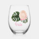 Ce verre à vin tropical de Bachelorette propose un casquette amusant et des lunettes de soleil regroupées agrémentées de feuilles de monstères tropicales, pour personnaliser ce souvenir amusant.